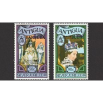 Znaczki i blok wydane wcześniej tego samego roku z okazji 25. rocznicy koronacji królowej Elżbiety II, tym razem z nadrukami „ROYAL VISIT 28th OCTOBER 1977” upamiętniającymi wizytę królowej na Antigui i Barbudzie. Znaczki wydano pierwotnie dla Antigui, po czym opatrzono je nadrukiem „BARBUDA”.