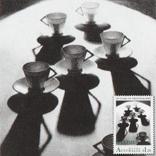 Na znaczku widnieje praca australijskiego fotografia modernistycznego imieniem Olive Cotton zatytułowana „Tea cup ballet”.