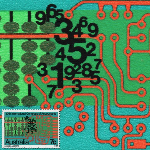 Znaczek upamiętniający dziesiąty międzynarodowy kongres księgowych, który odbył się w Sydney.
