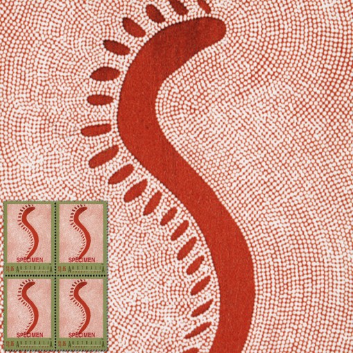 Wzór znaczka w czwórce z serii upamiętniającej międzynarodowy rok ludności rdzennej i przedstawiającej malarstwo Aborygenów. Walor posiada nadruk „specimen” (wzór).