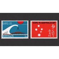 Na znaczkach widnieją kolejno: pawilon australijski w Osace i gwiazdozbiór Krzyża Południa.