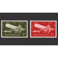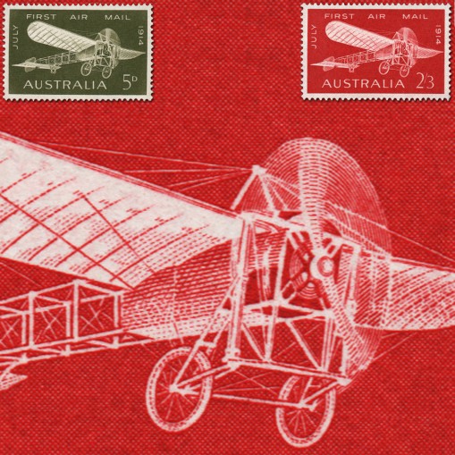 Znaczki upamiętniające pierwszy australijski lot transportujący pocztę z Melbourne do Sydney.
