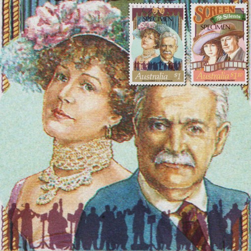 Wzory dwóch znaczków z serii przedstawiającej słynnych aktorów teatralnych i filmowych. Walory posiadają nadruki „specimen” (wzór).