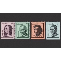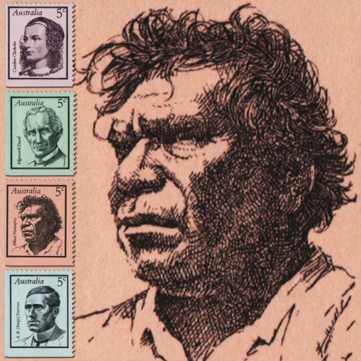 Na znaczkach widnieją słynni Australijczycy, kolejno: