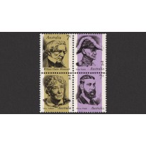 Na znaczkach widnieją słynni Australijczycy, kolejno: