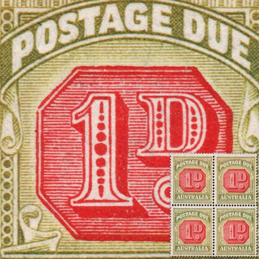 Znaczek dopłaty w czwórce. Jest to odmiana tego waloru z perforacją 14 1/2 : 14 wydana w 1938 roku.