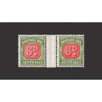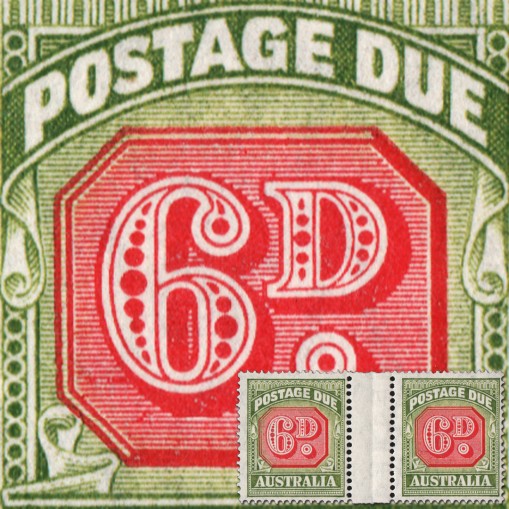 Znaczek dopłaty o nominale 6d w parce przedzielonej marginesem wewnętrznym arkusza. Jest to odmiana tego waloru z perforacją 14 1/2 : 14 i ze znakiem wodnym przedstawiającym koronę ponad literami „C of A” wydana w 1947 roku.