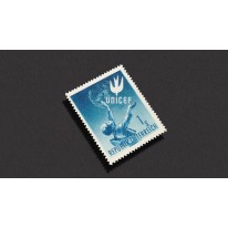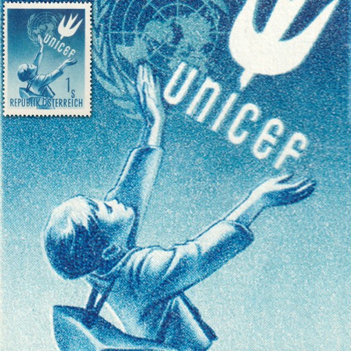 Znaczek wydany 14 maja 1949 roku z okazji pierwszej rocznicy działalności UNICEF w Austrii.