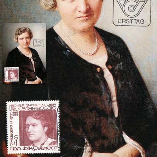 Znaczek na karcie maksimum upamiętniający setną rocznicę urodzin Hildegard Burjan, austriackiej działaczki społecznej, feministki, założycielki świeckiej wspólnoty „Caritas Socialis”, błogosławionej Kościoła rzymskokatolickiego. W 1919 weszła do parlamentu jako pierwsza kobieta z partii chrześcijańsko-społecznej. Pracowała na rzecz ochrony państwa nad matką i dzieckiem i edukacji kobiet.