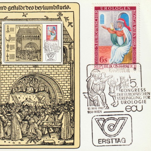 Znaczek na karcie maksimum upamiętniający piąty Europejski Kongres Urologiczny we Wiedniu.