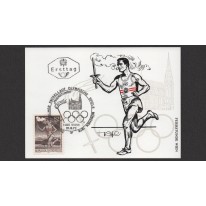 Na znaczku i karcie widnieje biegacz z pochodnią.