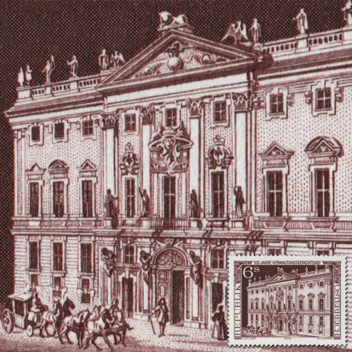 Na znaczku widnieje budynek sądu we Wiedniu.