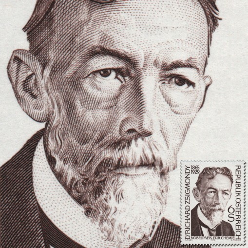 Znaczek upamiętniający 50. rocznicę śmierci Richarda Zsigmondy, urodzonego we Wiedniu niemieckiego chemika, laureata Nagrody Nobla z 1925 roku. Prowadził badania w dziedzinie chemii koloidów – skonstruował ultramikroskop (1903) umożliwiający obserwację cząsteczek koloidalnych, opracowywał dializatory, badał ruchy Browna cząsteczek koloidalnych oraz żeli i koloidów ochronnych.