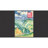 Znaczek na karcie maksimum, na którym widnieje dolina Asten w Goldberggruppe, podgrupie Wysokich Taurów, pasma górskiego w Alpach Wschodnich, na terenie dwóch austriackich krajów związkowych: Salzburga i Karyntii.