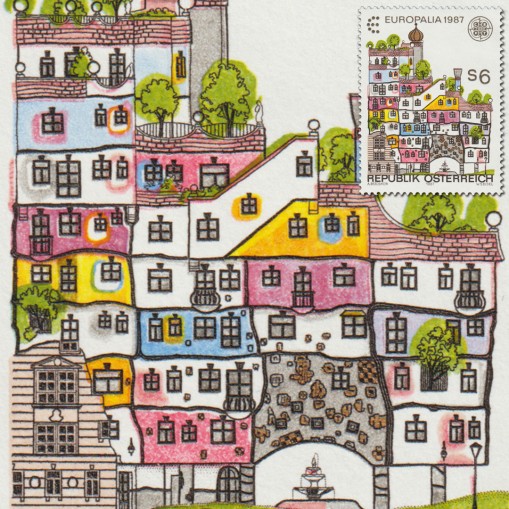 Na znaczkach widnieje Dom Hundertwassera, kompleks mieszkalny na rogu Kegelgasse i Löwengasse w Wiedniu, jedno z dzieł architektonicznych austriackiego artysty Friedensreicha Hundertwassera.