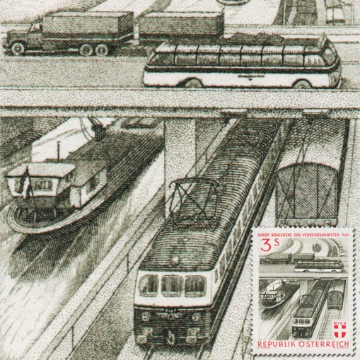 Znaczek upamiętniający konferencję europejskich ministrów transportu we Wiedniu.
