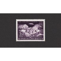 Na znaczku widnieją dłonie grawera znaczków podczas pracy.