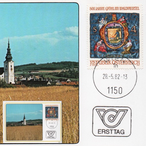 Znaczek na karcie maksimum upamiętniający 800. rocznicę powstania miasta Gföhl im Waldviertel.