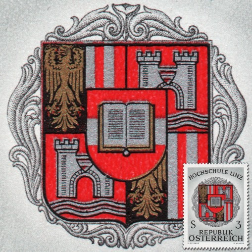 Znaczek upamiętniający inaugurację uniwersytetu w Linz.