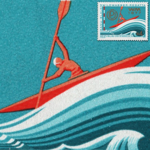 Znaczek upamiętniający mistrzostwa świata w kajakarstwie górskim, które rozegrano w Spittal.