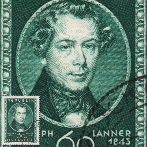 Kasowany znaczek wydany z okazji 150. rocznicy urodzin Josepha Lannera, austriackiego kompozytora epoki romantyzmu i twórcy dojrzałej formy wiedeńskiego walca koncertowego. Lanner swoją twórczością i życiem związany był z Wiedniem. Jest on autorem walców koncertowych, marszów, polek-galopów, landlerów, a także jedynej operetki „Alt-Wien” („Stary Wiedeń”). Był on współpracownikiem a później konkurentem Johanna Straussa (ojca).