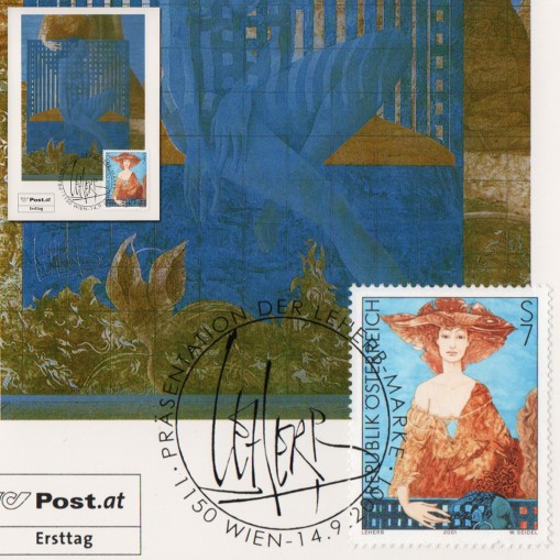 Znaczek na karcie maksimum promujący austriacką sztukę współczesną.
