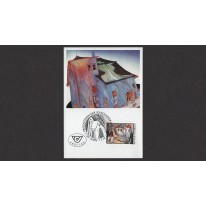 Na znaczku widnieje obraz Helmuta Schickhofera (1942-1998) zatytułowany „Dom na wietrze”, na karcie zaś jego obraz „Niepewność”.
