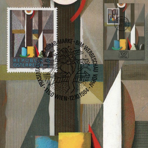 Znaczek na karcie maksimum promujący austriacką sztukę współczesną.