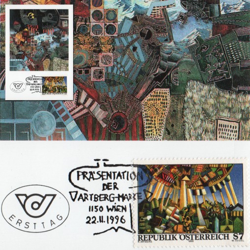 Znaczek na karcie maksimum promujący austriacką sztukę współczesną.