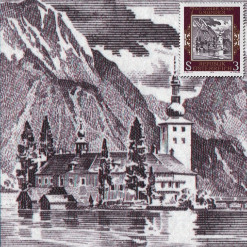 Znaczek upamiętniający 700. rocznicę założenia miasta Gmunden leżącego w Alpach Salzburskich, nad jeziorem Traunsee.