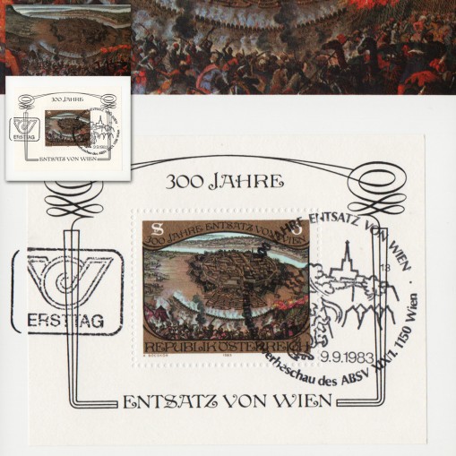 Oblężenie było nieudaną próbą zdobycia Wiednia przez Imperium Osmańskie. Trwało od 14. lipca do 12. września, kiedy to polski król Jan III Sobieski poprowadził odsiecz, która zmusiła osmańską armię do odwrotu w bitwie pod wzgórzem Kahlenberg. Bitwa ta uwieczniona została na widocznym na znaczku obrazie flamandzkiego artysty Franza Geffelsa.