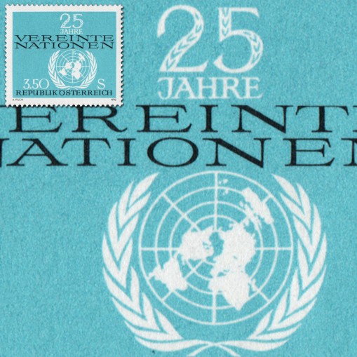 Znaczek upamiętniający 25. rocznicę powstania Organizacji Narodów Zjednoczonych.