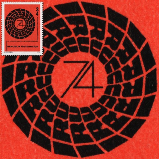 Znaczek upamiętniający kongres międzynarodowego stowarzyszenia transportu drogowego.