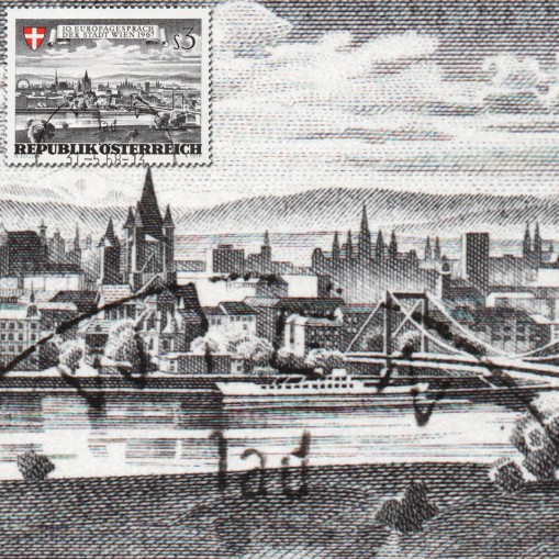 Kasowany grzecznościowo znaczek upamiętniający dziesiąte tzw. rozmowy europejskie (niem. „Europagespräche”) mające miejsce we Wiedniu.