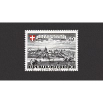 Na znaczku widnieje panorama Wiednia widziana z leżącego nad Dunajem budynku Marschallhof.