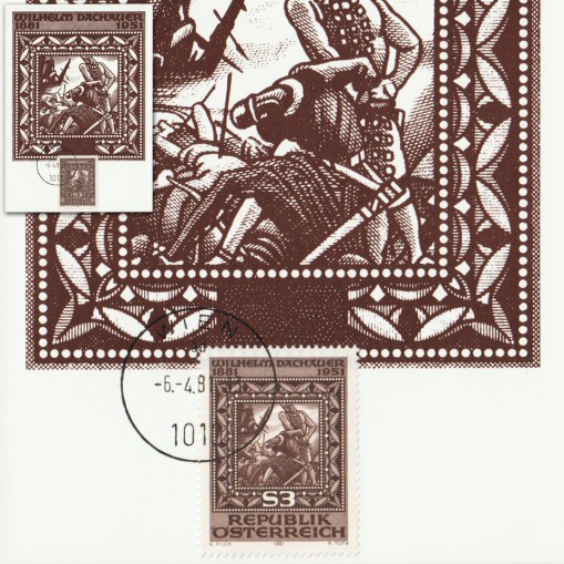 Znaczek na karcie maksimum upamiętniający setną rocznicę urodzin malarza austriackiego Wilhelma Dachauera.