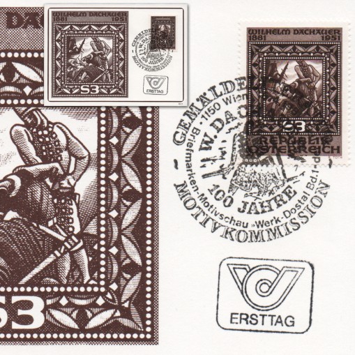 Znaczek na karcie maksimum upamiętniający setną rocznicę urodzin malarza austriackiego Wilhelma Dachauera.