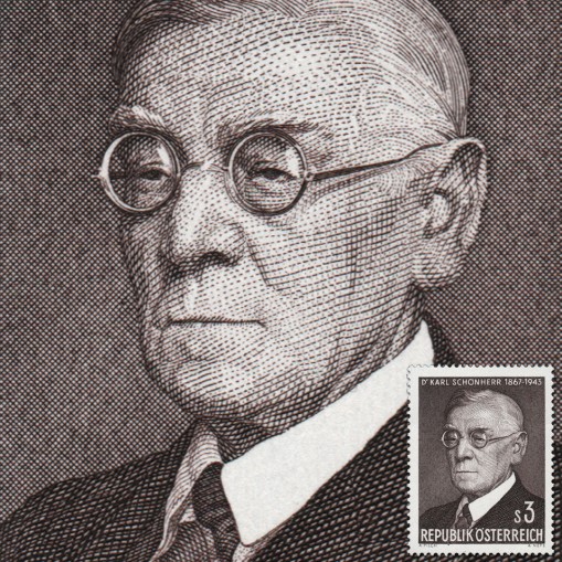 Znaczek upamiętniający setną rocznicę urodzin pisarza imieniem Karl Schönherr.
