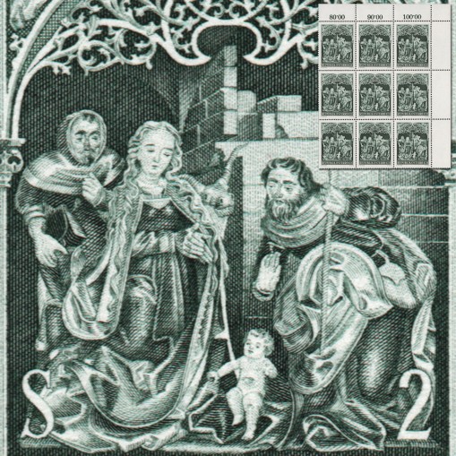 Na znaczku widnieje pokłon pasterzy z tryptyku w kaplicy świętego Jana znajdującej się w żeńskim zakonie benedyktyńskim Nonnberg w Salzburgu.