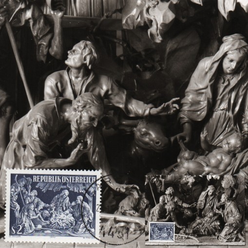 Na znaczku i karcie widnieje rzeźba przedstawiająca pokłon pasterzy i znajdująca się w klasztorze w Garsten.