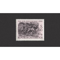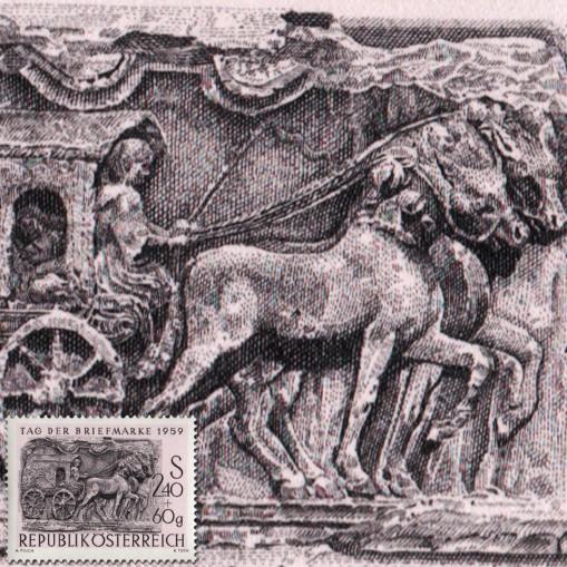 Na znaczku widnieje relief z bazyliki w Maria Saal przedstawiający rzymski powóz.