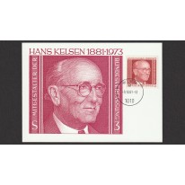 Znaczek na karcie maksimum upamiętniający setną rocznicę urodzin austriackiego prawnika i filozofa prawa Hansa Kelsena. Był on przedstawicielem normatywizmu i twórcą koncepcji „czystej nauki prawa” (niem. Reine Rechtslehre).
