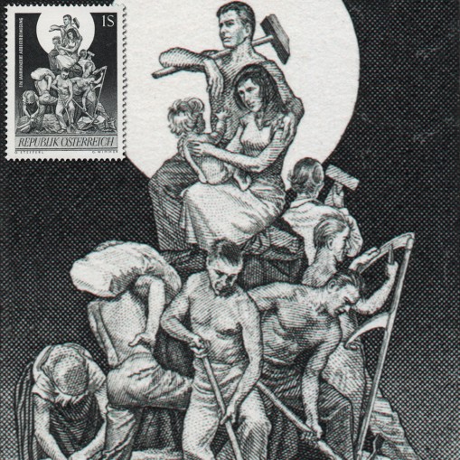 Znaczek upamiętniający setną rocznicę ruchu ludzi pracy w Austrii.