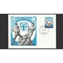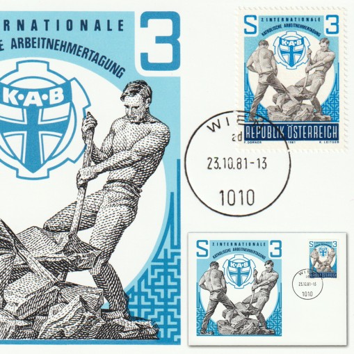 Znaczek na karcie maksimum upamiętniający Międzynarodowe Spotkanie Pracodawców Katolickich we Wiedniu.