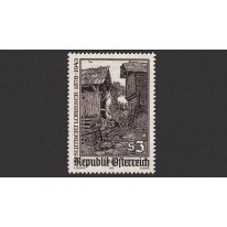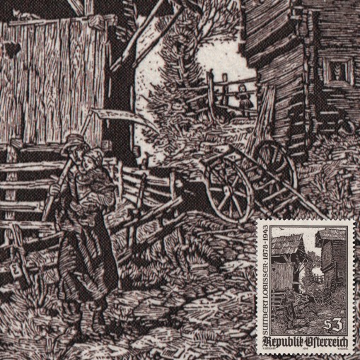 Na znaczku widnieje jego drzeworyt przedstawiający rolników w austriackich górach.