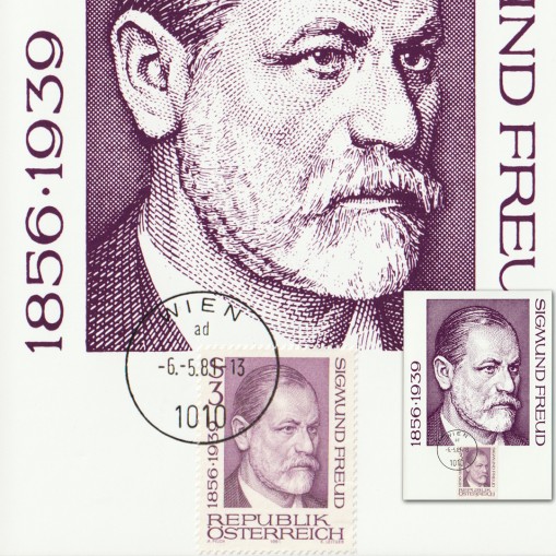 Znaczek na karcie maksimum upamiętniający 125. rocznicę urodzin Sigmunda Freuda, austriackiego lekarza żydowskiego pochodzenia, neurologa, twórcy psychoanalizy.