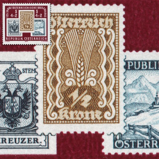 Na znaczku widnieją walory austriackie z lat 1850, 1922 i 1945.