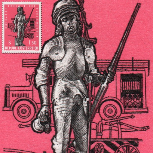 Znaczek wydany z okazji setnej rocznicy powstania austriackiej ochotniczej straży pożarnej.