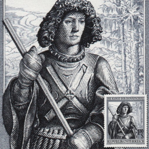 Znaczek upamiętniający sztukę szkoły naddunajskiej, czyli grupy malarzy działających w latach 1500-1530/40 na terenach Bawarii i Austrii położonych w dolinie Dunaju. Wytworzyli oni charakterystyczny styl łączący tradycje malarstwa schyłkowego gotyku z wczesnym i dojrzałym renesansem.