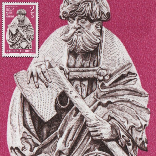 Na znaczku widnieje rzeźba świętego Mateusza z toporem autorstwa niemieckiego rzeźbiarza Josefa Matthiasa Götza (1696-1760) znajdująca się w ołtarzu kościoła świętego Wita w Krems.